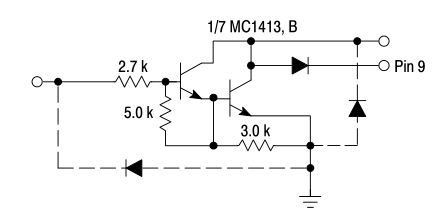 Le commande en puissance des bobines des cinq relais est réalisé par le composant MC1413 :