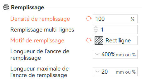 Les bouchons sont imprimés avec un taux de remplissage de 100% :
