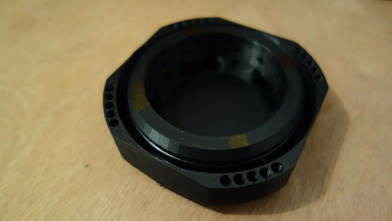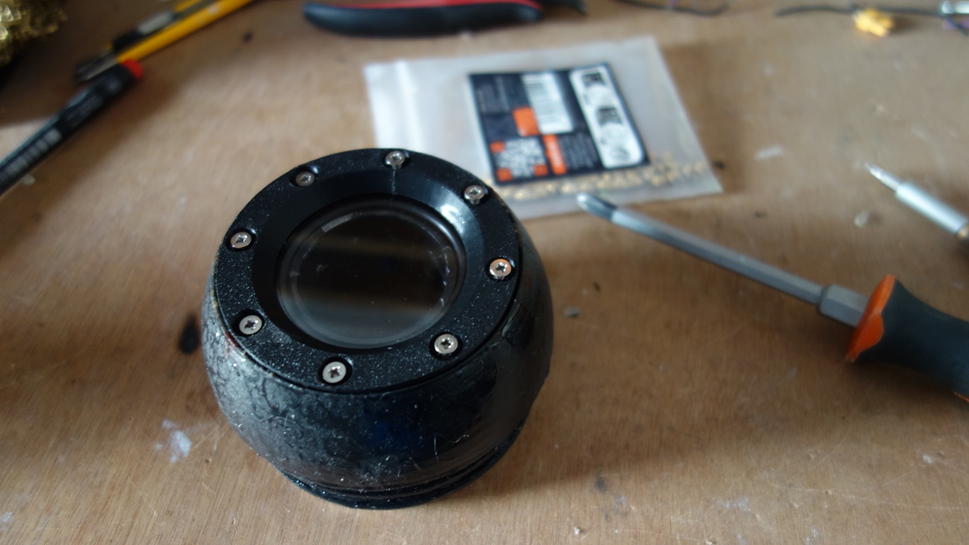 Le bouchon avant est réalisé en impression 3D avec du plastique PETG. Il est constitué d’un plexiglas transparent de 5 mm d’épaisseur fixé via 8 vis M3 et un join torique permet l’étanchéité. Le plexiglas transparent va permettre à la camera de filmer l’extérieur.
