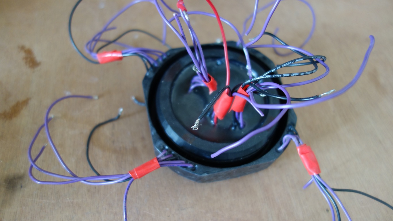 Le bouchon arrière rempli de résine avec les fils pour les 5 turbines :