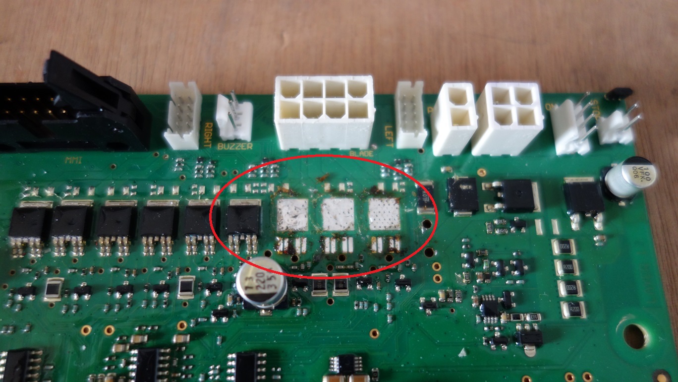 Après un diagnostic minutieux, j’ai vérifié le pont triphasé de la commande du moteur brushless. Il s’avère qu’un transistor Mosfet du pont est défectueux. Il y a un court-circuit entre le drain et la source du mosfet. La pièce concernée est un transistor de référence AOD609, qui nécessite un remplacement pour restaurer la fonctionnalité du moteur.